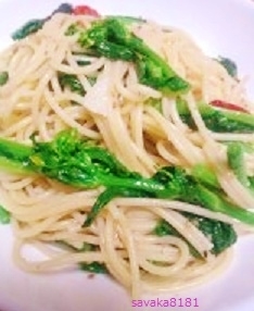 スパゲッティーのパンチョで白ナポ そして 白菜の菜の花のおひたし Menehune旅写真プラス
