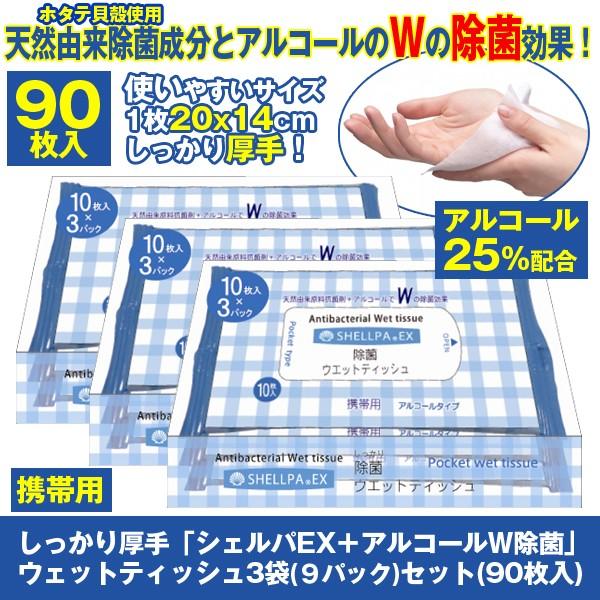 しっかり厚手 シェルパex アルコールw除菌 ウェットティッシュ3袋 9パック セット 90枚入 アルコール除菌 携帯 除菌シート ホタテ貝殻100 使用 Fs Wt プレミアムポニー 通販 Yahoo ショッピング